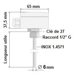 Sonde sur boitier 1/2G longueur 100 mm active, signal en 0/10 V, 24 échelles de mesure, alimentation 24VDC