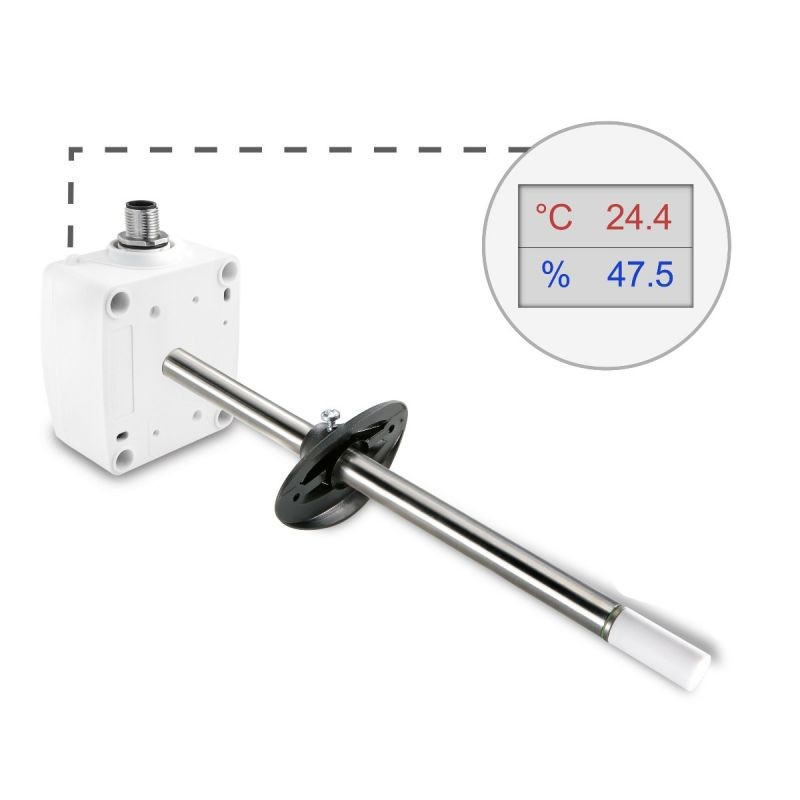 Sonde d'humidité active et de température active pour gaine en 0.....10 V avec afficheur. Raccordement par connecteur M12