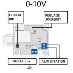 Mesure de luminisoté en sortie 0/10 V pour 4 échelles selectionables par contact DIP