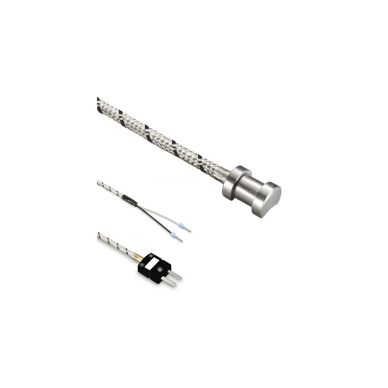 Thermocouple J FeCu-Ni de surface pour tuyauterie, terminaison nues ou avec connecteur miniature. Après montage de la sonde sur la surface à mesurer, bien isoler celle-ci avec un calorifugeage pour éviter les influences de la température ambiante sur la mesure.