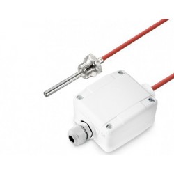 Ces sondes à visser 1/2 " Gaz de longueur 100 mm sur câble silicone sont associées à un boitier polyamide IP 65 équipé d'un transmetteur de température en 4 / 20 mA ou 0 / 10 V. Le boitier comporte 2 presse étoupe pour le raccordement (raccordement sonde et signal). Caractéristiques techniques: Sonde 1/2 " Gaz x 100 mm en inox 1.4571 en IP54, élément de mesure Pt1000 classe B selon DIN EN 60751 (± 0,3 degrés à 0 degrés), câble de raccordement isolé silicone -50 à + 180 degrés. Boitier IP 65 équipé d'un transmetteur de température en 4 / 20 mA ou 0 / 10 V. Alimentation 12-36VDC, 24VAC pour 0/10V et 12-36VDC selon charge pour 4/20 mA. Sortie analogique 0 / 10 V technologie 2 fils avec résistance de charge mini. 50 k Ohm. Température de -30 / + 70 degrés. Sortie analogique 4/20 mA technologie 2 fils. Réglage de la plage de mesure par contact DIP (24 plages possibles). Précision +/-0,2k + max 3% PE. Le domaine d'utilisation traditionnel de ces capteurs est le génie climatique. Ces sondes sont produites en Allemagne et sont livrées dans un emballage individuel avec une fiche technique (les versions françaises des fiches techniques sont téléchargeables sur notre site).