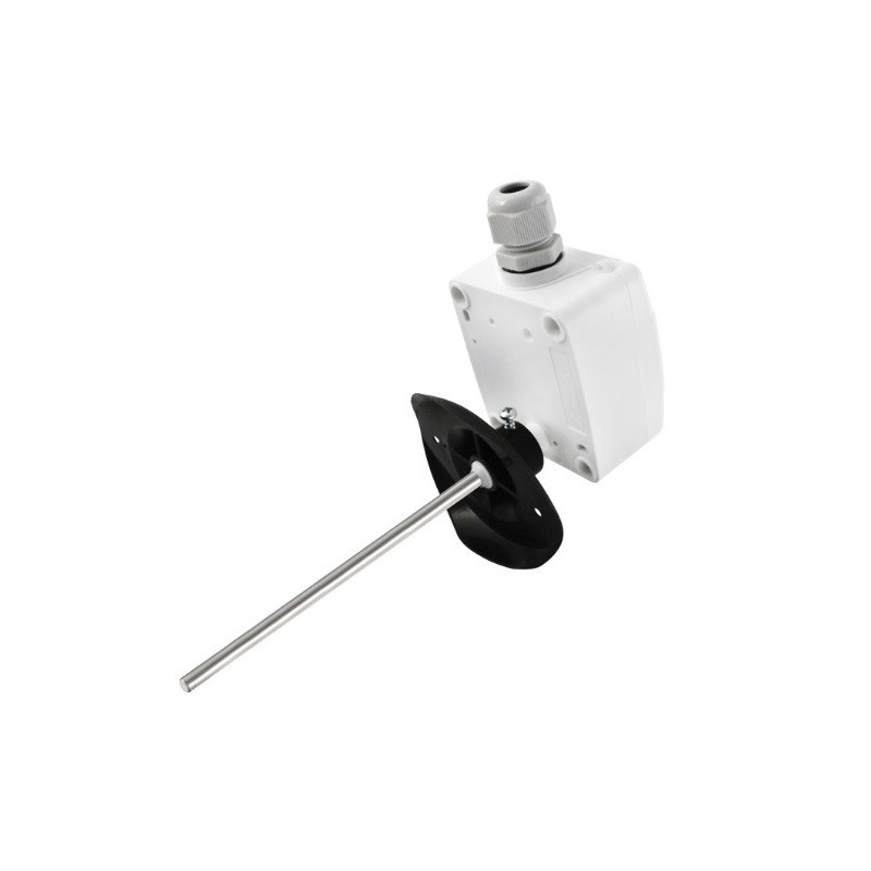 Sonde de gaine sur boitier avec brise de montage, sortie active 0/10V ou 4/20mA, longueur au choix selon le menu déroulant. 24 Echelles de mesure
