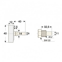 Thermomètre bimétallique avec doigt de gant 1/2G longueur 32,5 mm. Bague diamètre 40 mm en tôle d'acier galvanisée. Cadran en plastique ABS blanc avec un bord surélevé comme couvercle. Fenêtre en Fenêtre polystyrène / verre instrument plat. Tube plongeur 9 mm axial. Plage de mesure 0 à 120°C. Pression maximale admissible 6 bars. Précision classe 2 selon DIN16203/DIN EN 13190.