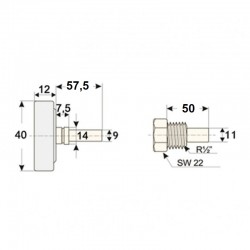 Thermomètre bimétallique avec doigt de gant 1/2G longueur 50 mm. Bague diamètre 40 mm en tôle d'acier galvanisée. Cadran en plastique ABS blanc avec un bord surélevé comme couvercle. Fenêtre en Fenêtre polystyrène / verre instrument plat. Tube plongeur 9 mm axial. Plage de mesure 0 à 120°C. Pression maximale admissible 6 bars. Précision classe 2 selon DIN16203/DIN EN 13190.