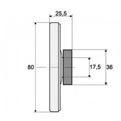 Thermomètre de surface avec aimant. Boîtier en tôle d'acier galvanisée. Cadran Plastique ABS blanc. Fenêtre en polystyrène. Fixation par aimant circulaire, centré, collé. Taille nominale 80 mm. Température 0°C...+120°C. Classe de précision 2 (DIN 16203 / DIN EN 13190).