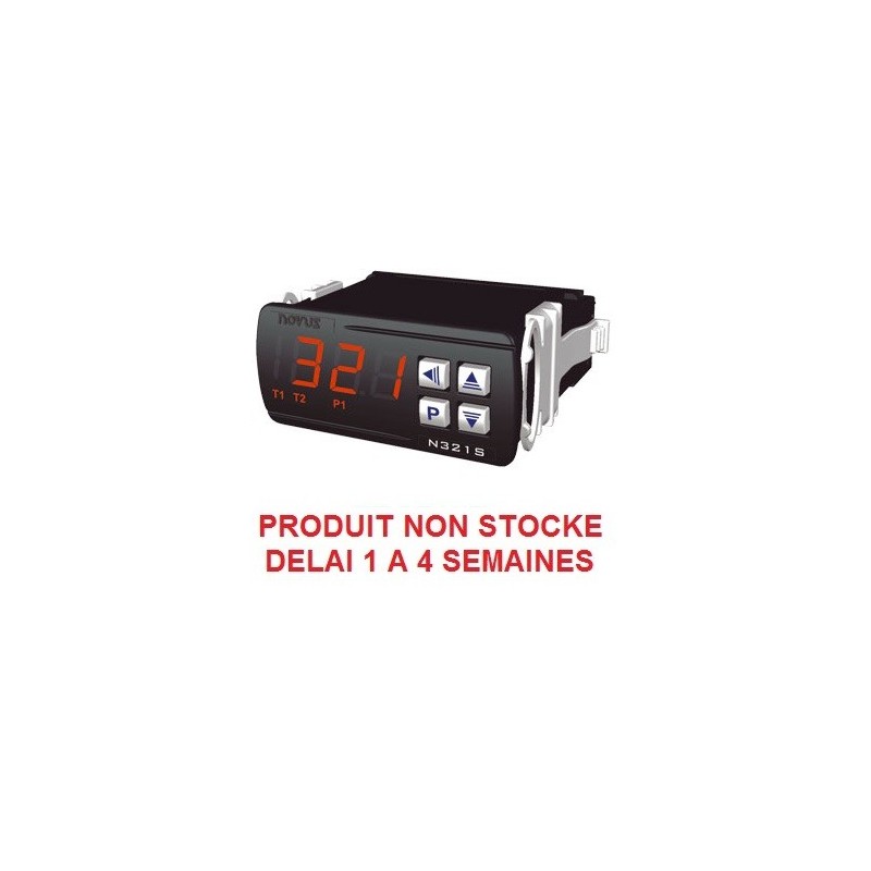 Le N321S est un indicateur électronique de température avec RS485 étudié pour être utilisé dans les applications de chauffage d'eau par énergie solaire. Il se raccorde avec les deux sondes de températures de type NTC fournies. La première sonde est prévue pour être installée dans le panneau solaire et la seconde est prévue pour être plongé dans le réservoir d'eau. Ces sondes ont un câble de 3 mètre qui peut être rallongé jusqu'à 200 mètres. L'appareil dispose d'un relais de sortie qui sera commuté par rapport au seuil différentiel paramétré. L'affichage est paramétrable, vous disposez de possibilité de faire afficher en alternance les valeurs de la sonde 1 et 2 et le différentiel. Caractéristiques techniques: Alimentation 85 à 250 Vac 50-60 Hz, échelle: ?50 à 120 C et précision de 0,6 C avec la NTC d'origine. Résolution 0.1: de ?19.9ºC à 199.9ºC et 1C ailleurs. 1 Relais SPDT 10A/250 Vac Fonctionnement : 0 à 40 degrés - Stockage : -20 à 60 degrés - Humidité relative : 20 à 85% sans condensation Boîtier : Polycarbonate UL94 V-2. Raccordement: 4,0 mm² maximum. Protection : IP65 face avant / IP 42 boîtier. Dimension : 74 x 32 x 75 mm. Poids : ~ 110 g. Découpe : 70 x 29 mm