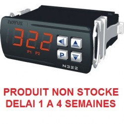 Cet appareil est un Indicateur thermostat électronique de température encastrable avec 2 relais de sortie + RS485 qui se raccorde à une sonde de type thermocouple J, K ou T. Affichage degré C ou F, règlage d'offset de capteur. Il indique les messages d'erreurs de mesure hors gamme, et de rupture ou court circuit de la sonde. Fonction calibration et mot de passe. Caractéristiques techniques : Alimentation 24 Vdc/ac (12~30 Vdc/ac). Entrée capteur type thermocouple avec : Thermocouple J : Echelle: 0 à 600 degrés Précision : ±3 degrés ; compensation de soudure froide, Thermocouple K : Echelle: -50 à 1000 degrés Précision : ±3 degrés ; compensation de soudure froide, Thermocouple T : Echelle: -50 à 400 degrés Précision : ±3 degrés ; compensation de soudure froide. . Résolution 0.1: de ?19.9ºC à 199.9ºC et 1 degré ailleurs. 1 Relais SPDT 10A/250 Vac et 1 relais SPST 3A/250 Vac.- Fonctionnement : 0 à 40 degrés - Stockage : -20 à 60 degrés - Humidité relative : 20 à 85% sans condensation Boîtier : Polycarbonate UL94 V-2. Raccordement: 4,0 mm² maximum. Protection : IP65 face avant / IP 42 boîtier. Dimension : 74 x 32 x 75 mm. Poids : ~ 110 g. Découpe : 70 x 29 mm